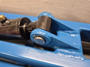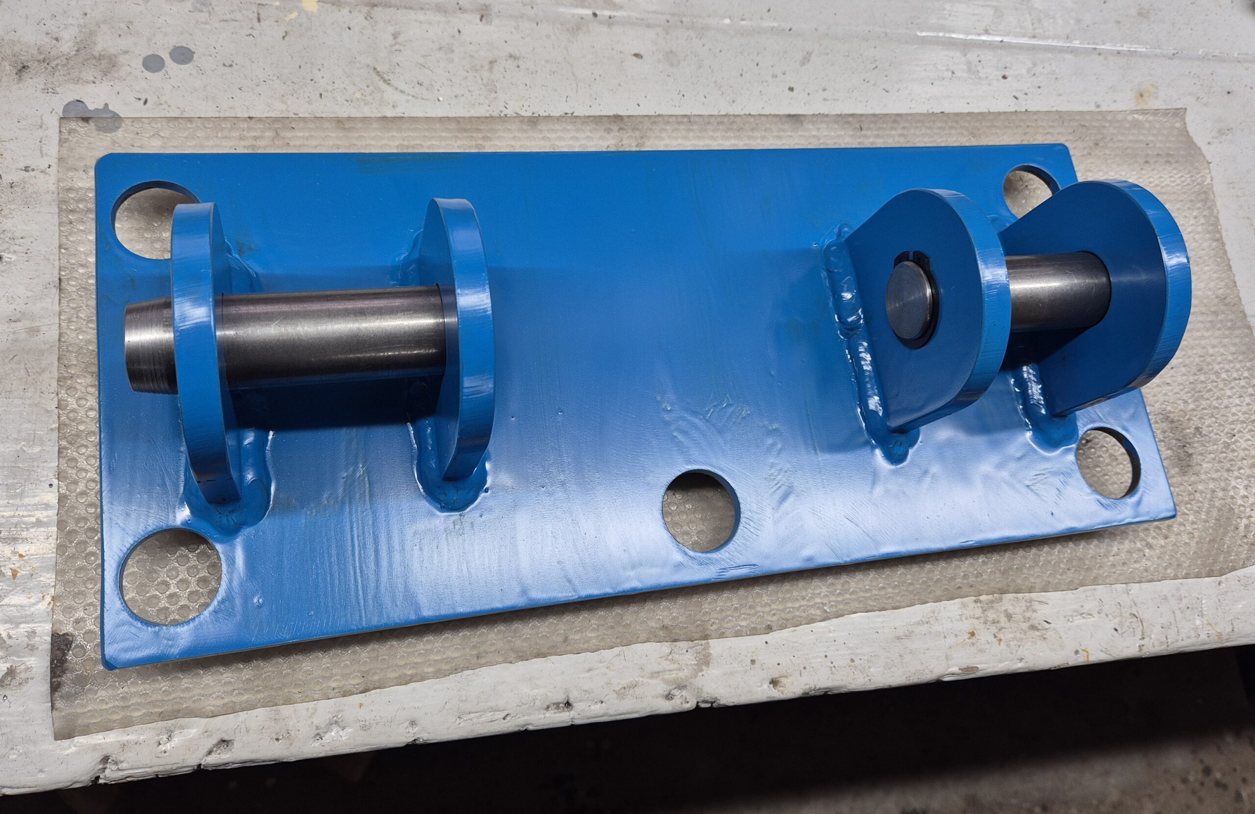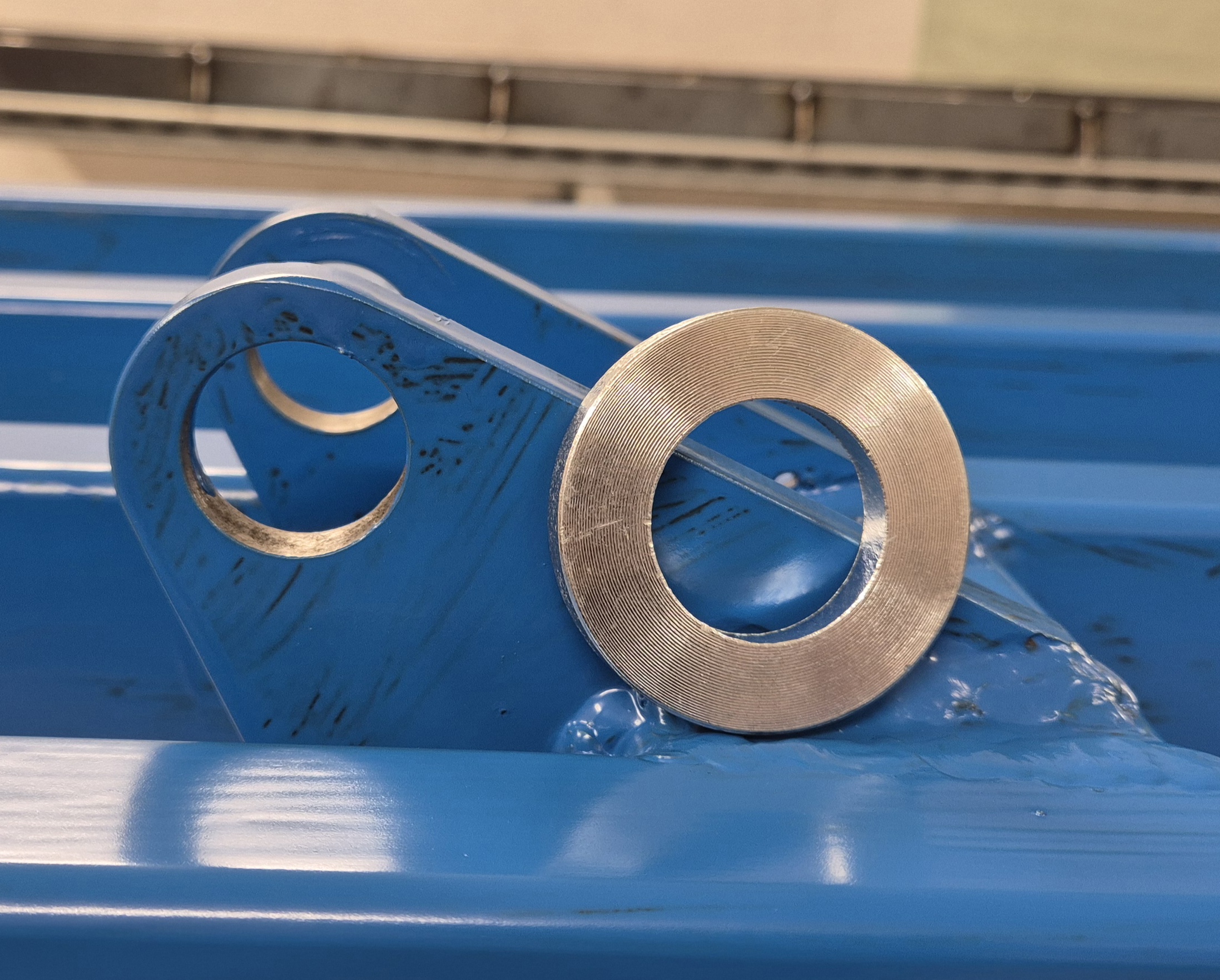 Tillräckligt starkt, men i förhållande till allt annat så ser det övre örat lite tunt ut. Örat är i 10mm stålplåt, men det tar ju skjutande kraft på upp till 10 ton. Så jag köpte några 8mm tjocka brickor.